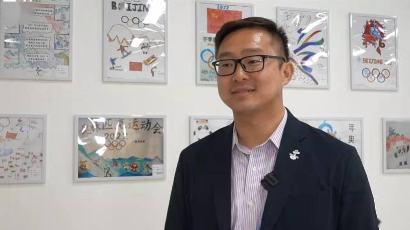 瞿嵩明的办公室墙上,挂着各国小朋友为北京冬奥会创作的绘画作品。